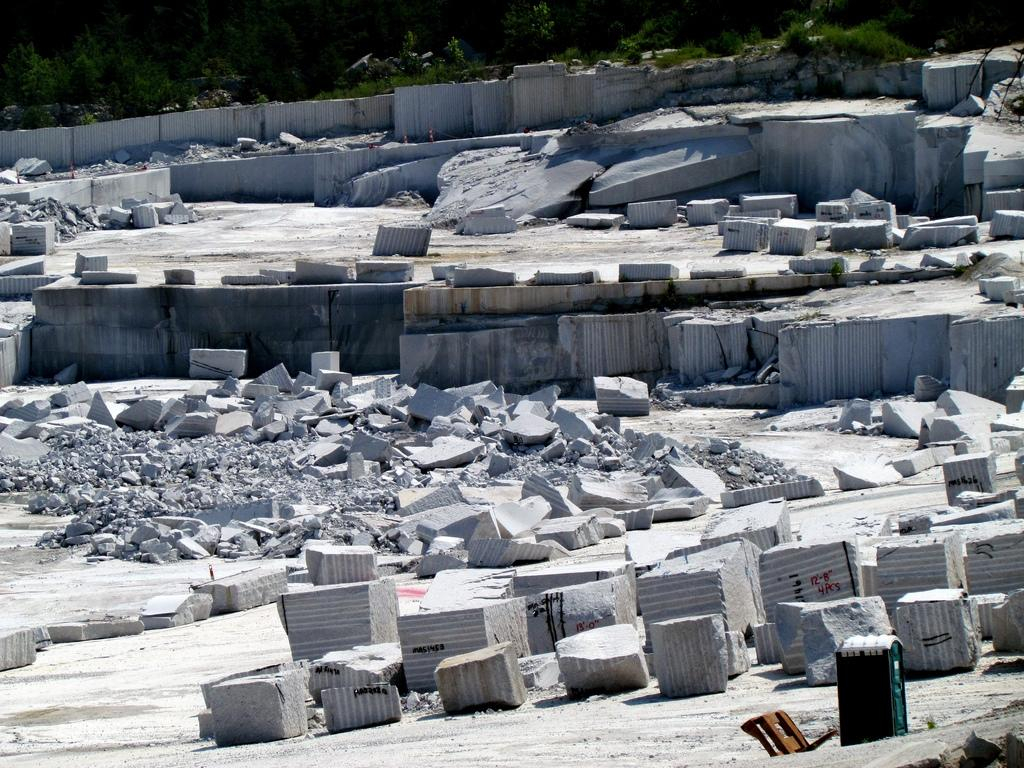 - Буровзрывной. Дешевый, кустарный и, по сути, «варварский» метод. В результате взрывов образуются блоки с высокой трещиноватостью и большим (часто до 30%) количеством отходов. В массиве породы бурятся шурфы, в которые закладывается промышленная взрывчатка. Один подрыв требует от 10 до 30 скважин и несколько тонн взрывчатого вещества. Спрогнозировать поведение массива породы при подрыве практически невозможно. После взрыва образовавшиеся глыбы сортируются и отправляются на распил.