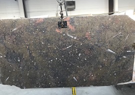 Поступление тёмно-коричневого мрамора с окаменелыми моллюсками.