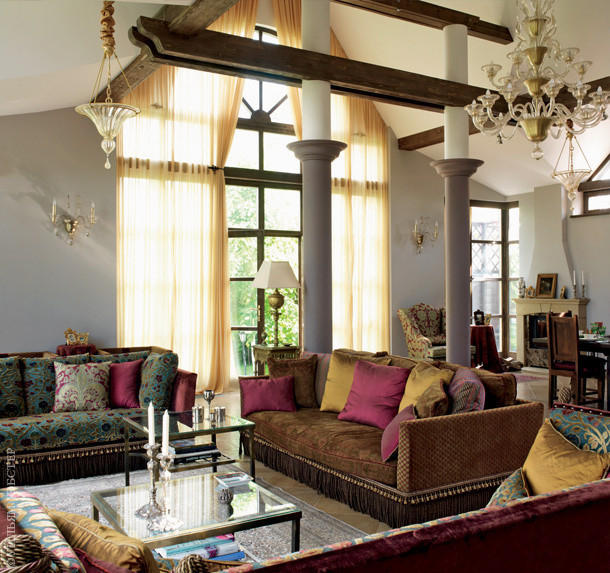 Перед нами фрагмент интерьера частного дома журналистки и телеведущей Марианны Максимовской. Просторная гостиная декорирована с выразительными отсылками к ампиру и модерну, и даже — к рококо. Обилие антиквариата и предметов искусства создают непередаваемую атмосферу интеллектуального и уютного пространства.