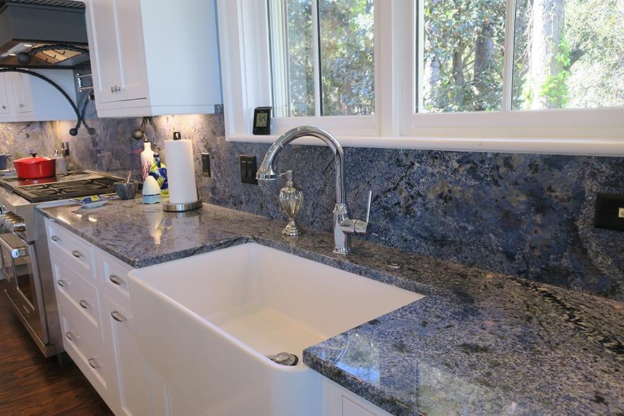 В полированной фактуре гранит Azul Bahia приобретает интенсивный цвет и глянцевую поверхность.