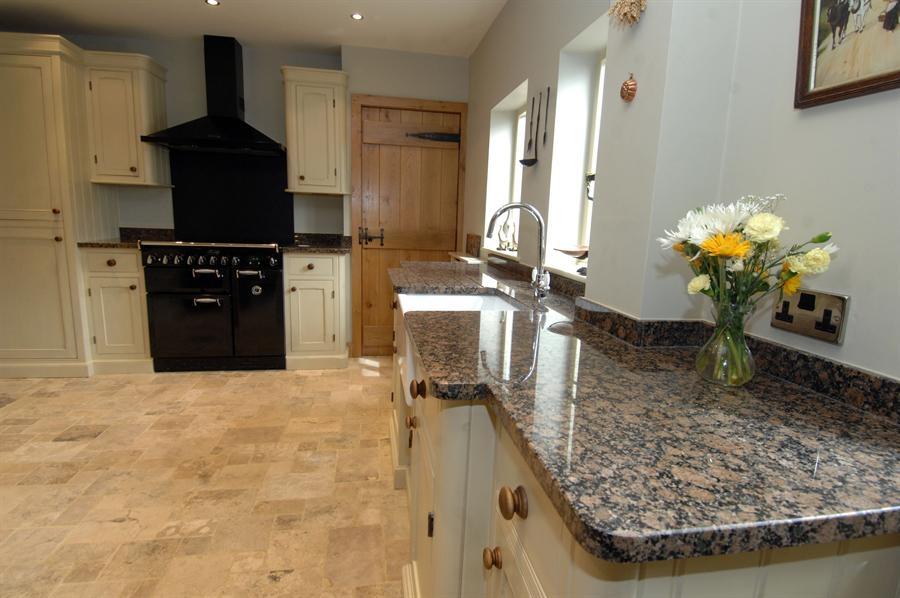 Рабочие поверхности кухни покрыты гранитом Baltic Brown - надежным и проверенным камнем. Финский гранит-рапакиви Baltic Brown широко востребован не только в странах Европы, но даже и в США. Где зачастую слагает именно кухонные столешницы. Дизайнеры и заказчики высоко ценят его за устойчивость перед загрязнениями, влагой и механическими повреждениями.