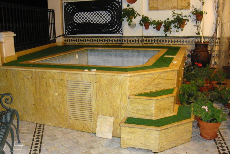 Очень необычный проект джакузи, расположенного в закрытом дворике одной из солнечных европейских стран. Вероятно, отделка жилого пространства была начата несколько десятилетий назад — прошлым поколением этой семьи. А потом проект обрастал новыми идеями, подручными материалами и декоративными элементами. На сегодняшний день это джакузи, как лоскутное одеяло, хранит в себе множество маленьких и красочных историй о нескольких поколениях своих владельцев.