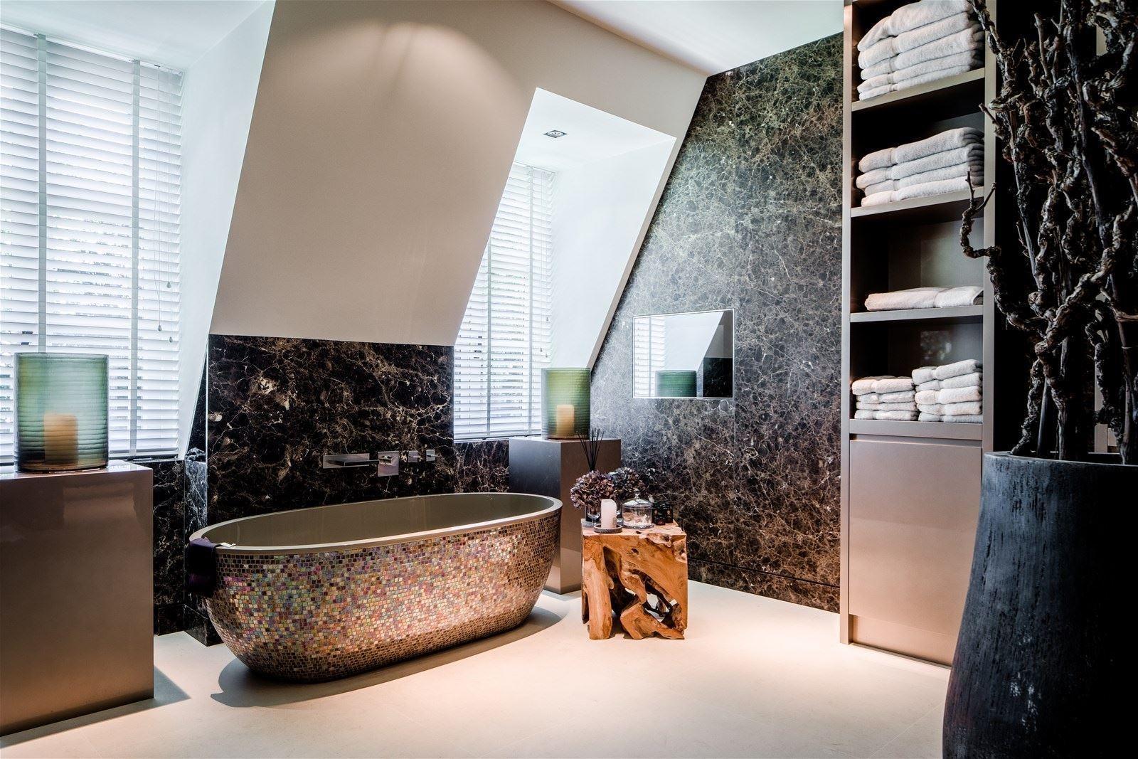 Перед нами проект роскошной ванной комнаты поместья "Ларен Ларендаль", расположенного в Нидерландах. Общая площадь резиденции 508 квадратных метров позволила не экономить и на пространстве ванной.