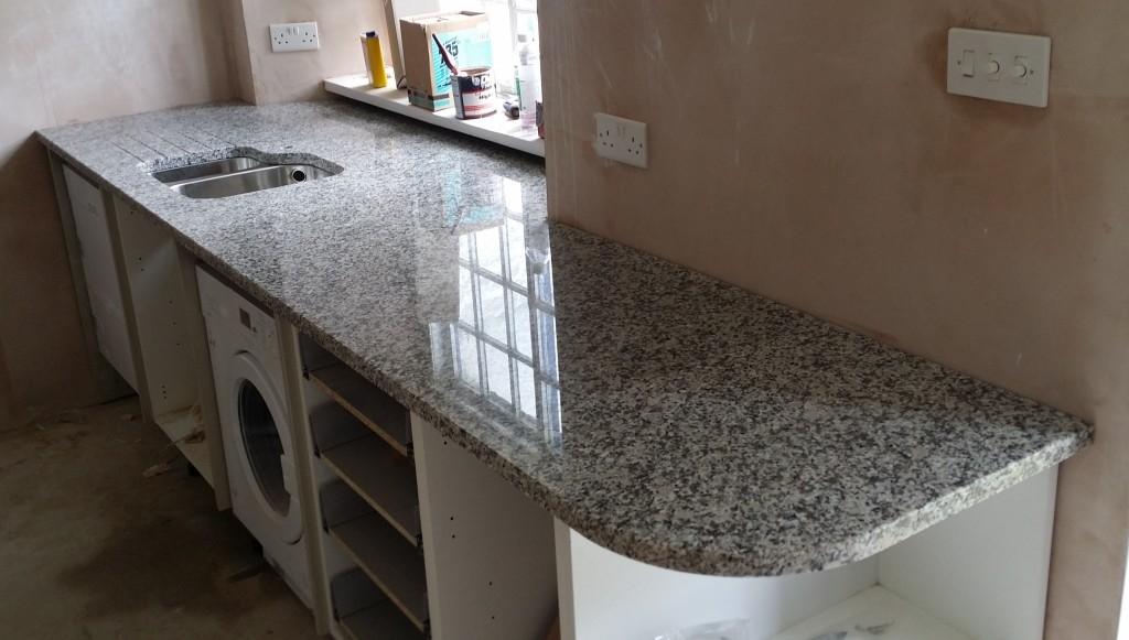 Все рабочие поверхности этой кухни вырезаны из гранита Bianco Sardo. Для проекта были задействованы 3-сантиметровые слэбы с полированной фактурой. В камне проделаны все необходимые отверстия для раковин, сантехники и варки. Изнаночная поверхность изделия укреплена дополнительным армированием.