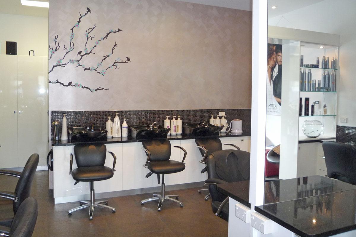 Все столешницы в парикмахерской вырезаны из гранита Black Galaxy - глубокого, черного, с мерцающими минеральными хлопьями во всей массе породы. Этот стильный камень органично встраивается в интерьер любой стилистики, но особенно выразителен в окружении вечной классики - черно-белой отделки. А золотисто-красное мерцание породы привносит в проект свою изюминку.