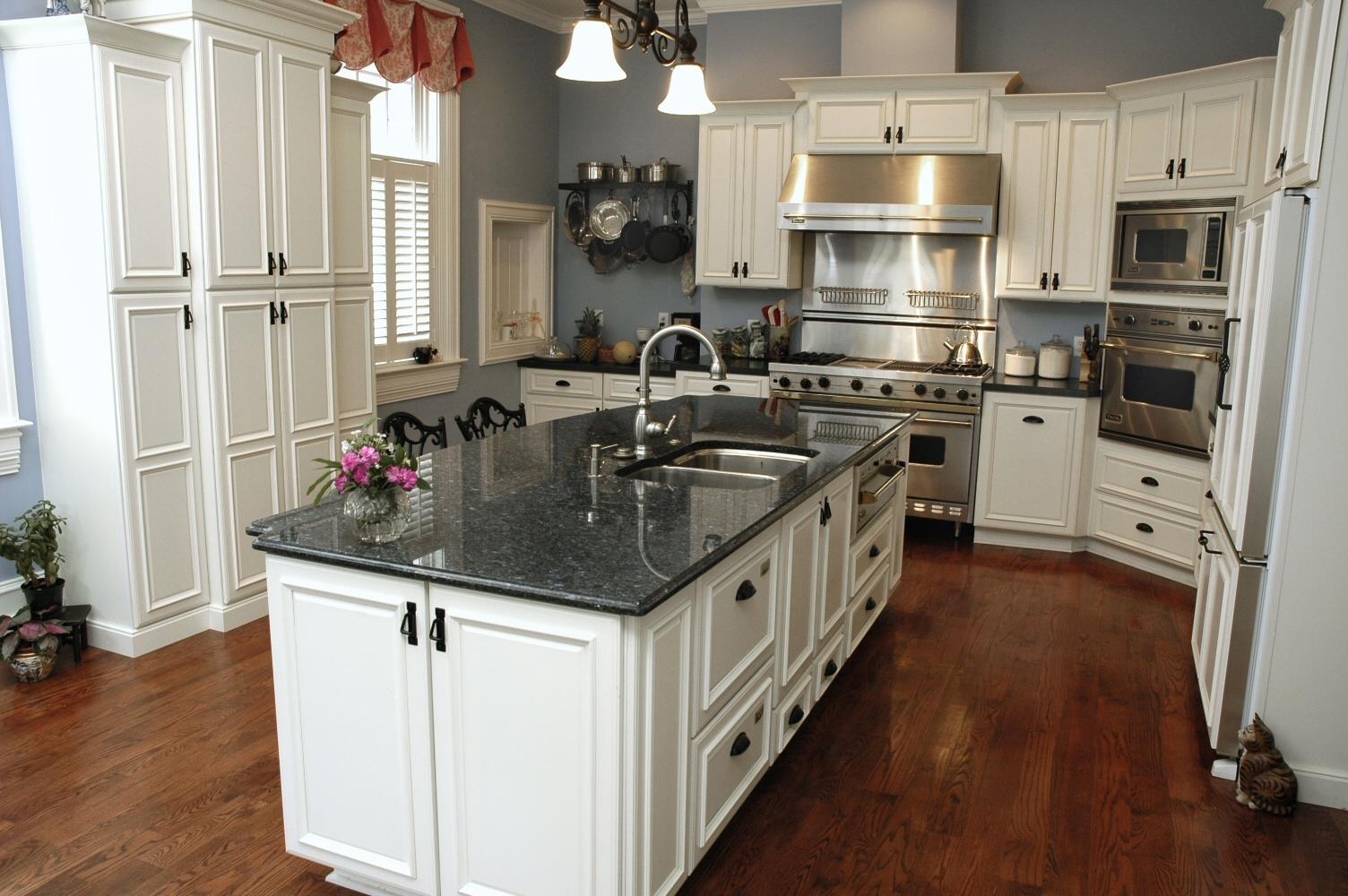 Являясь надежным долговечным материалом для кухни, становится и главным украшением всего пространства. Голубовато-серая цветовая палитра камня подходит для помещений, выдержанных в холодных оттенках или нейтральной черно-белой гамме.