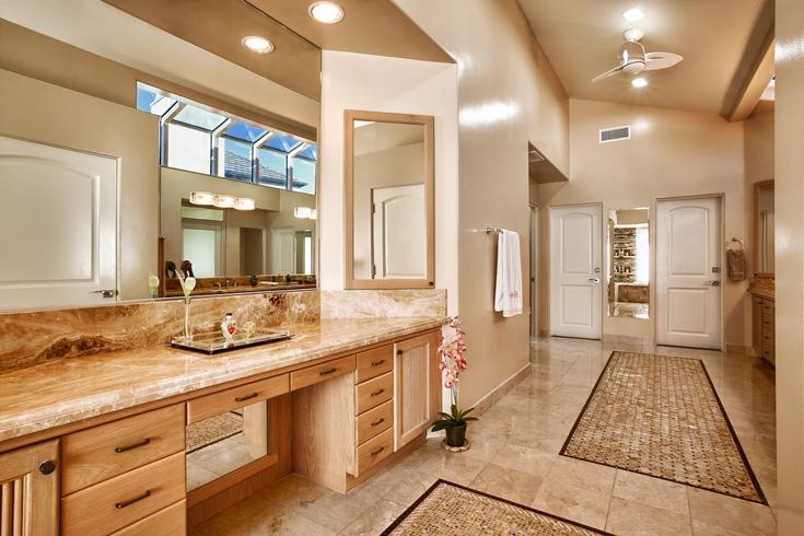 Из мрамора Breccia Sardo выполнены столешницы, обрамляющие раковины, и плинтуса.