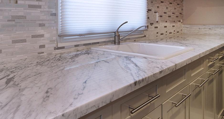Bianco Carrara - легендарный итальянский мрамор с тысячелетней историей. Его классическая красота, серый скромный рисунок на белоснежном фоне, делают этот камень образцом элегантности и благородства. Античные скульпторы считали за честь работать с этим камнем. Почему бы в наше время не облицевать им рабочую зону кухни?!