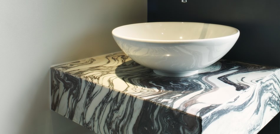 Ванная комната приобрела неповторимое звучание именно благодаря необычному мрамору - Cipollino Ondulato. Этот камень становится главным и самодостаточным декоративным элементом пространства, он привлекает к себе внимание и центрирует композицию. Его текстура поистине неповторима: волнистый рисунок серых, голубоватых, белых, бежевых, сиреневых и коричневых жилок... Будто картина моря, выполненная руками импрессиониста.