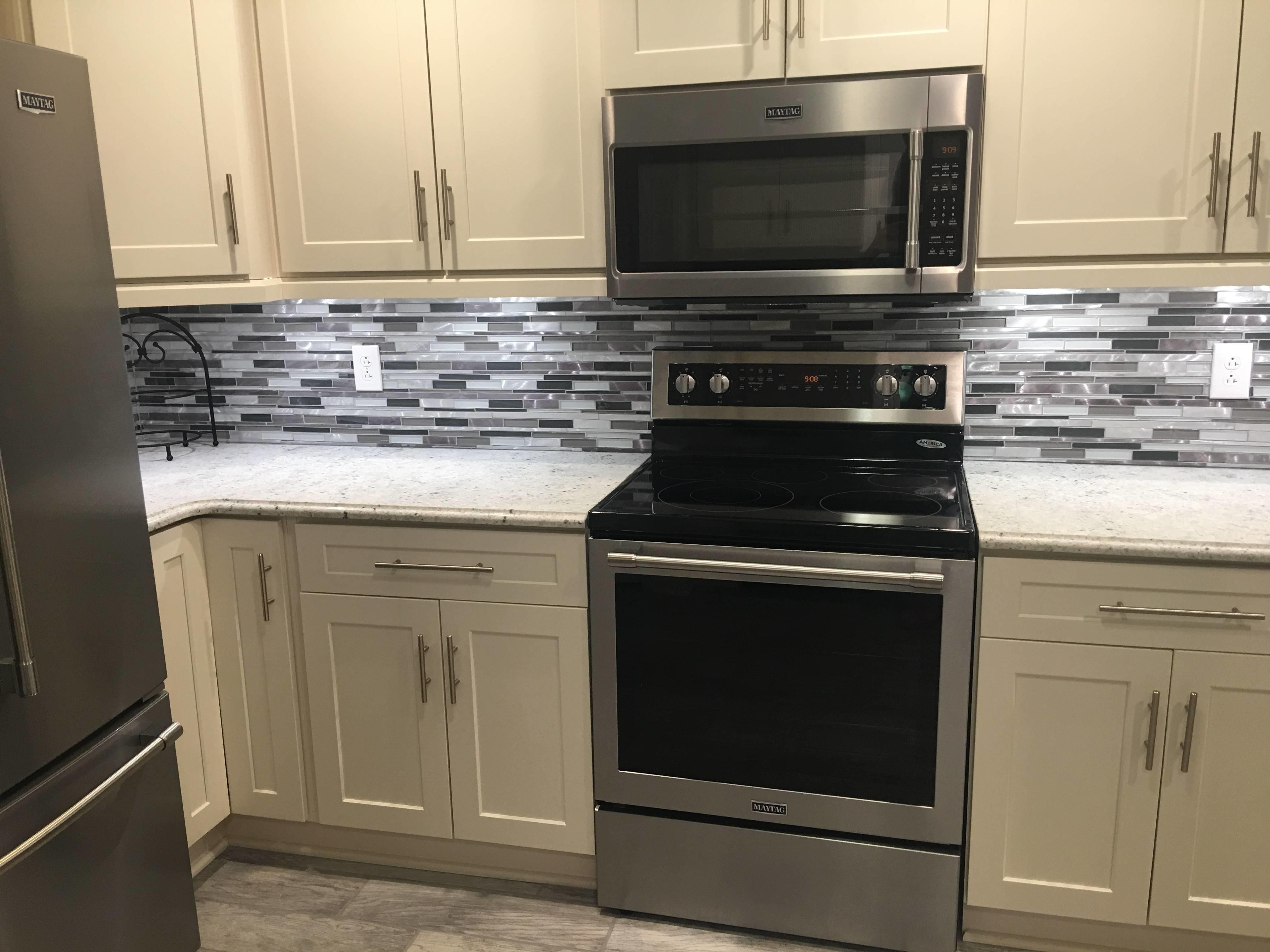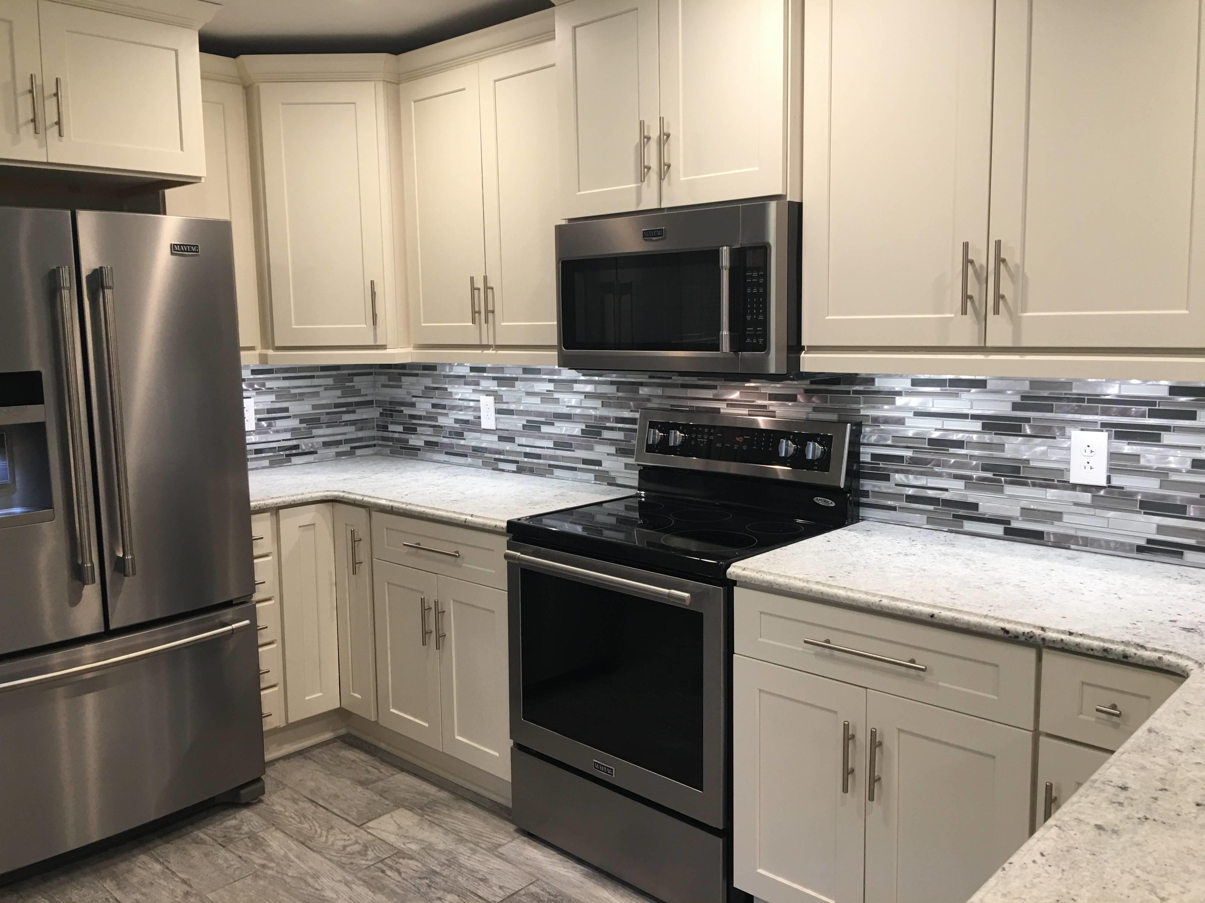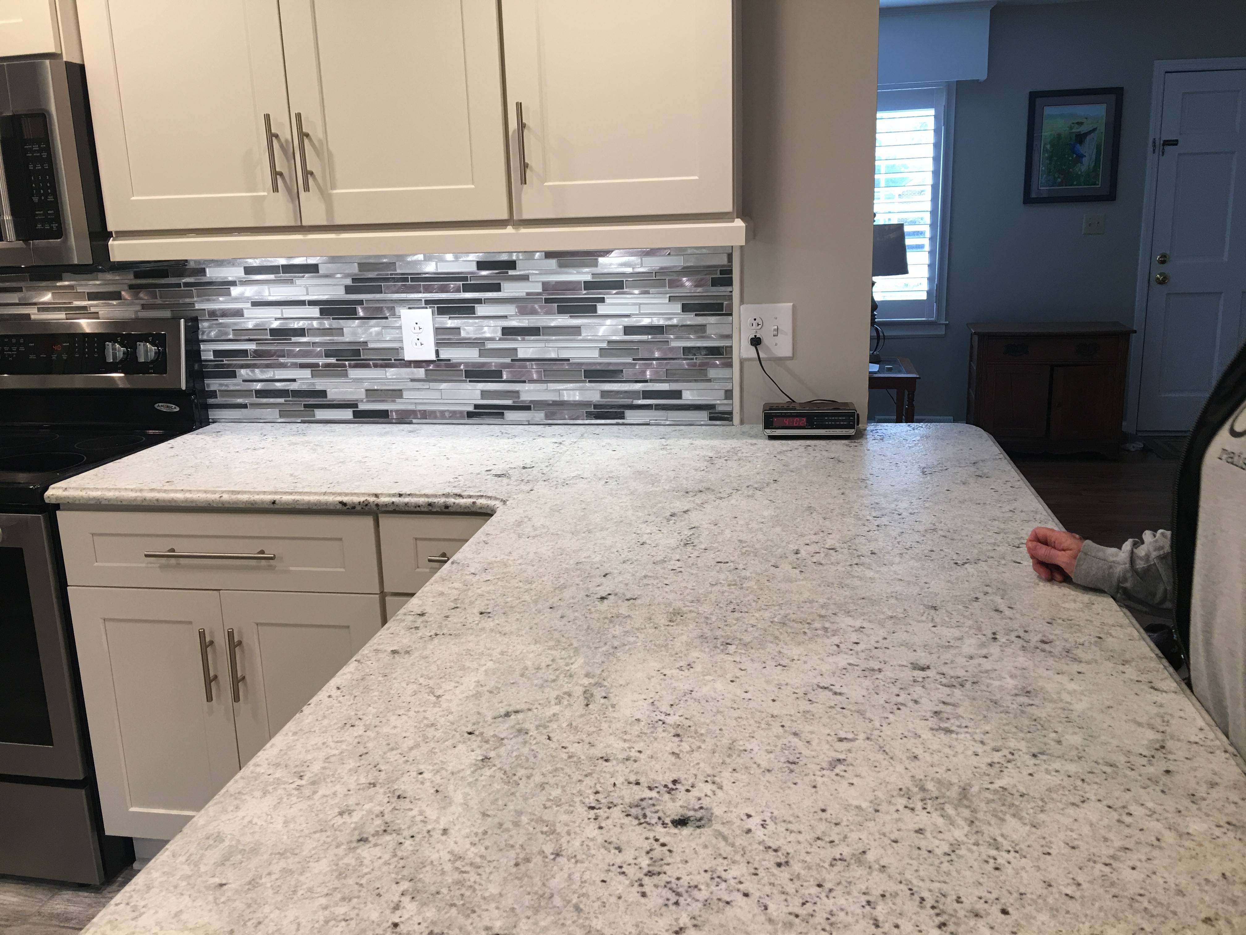 Рабочие поверхности кухни покрыты элегантным и стильным гранитом Colonial White.