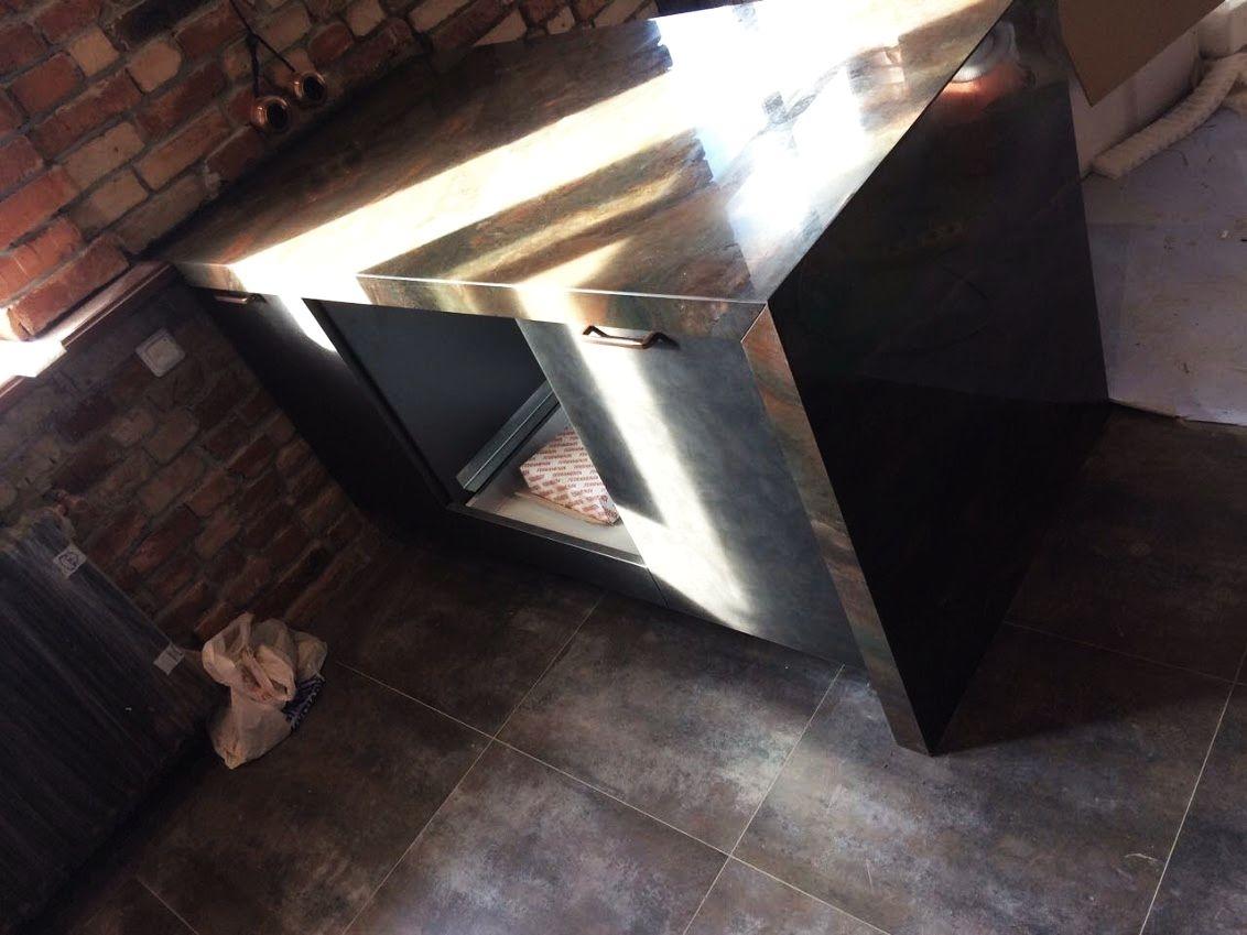 Этот проект мы выполняли для заказчиков из Минска. Владельцы новой квартиры, оформленной в стиле лофт, настолько загорелись самобытным рисунком кварцита, что готовы были ждать его доставки из Санкт-Петербурга.
