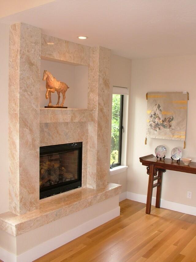 Камин выполнен из бежевого мрамора теплого оттенка Breccia Oniciata. Элегантный и в то же время «уютный», камень с богатой текстурой, становится достойным украшением любого интерьера.