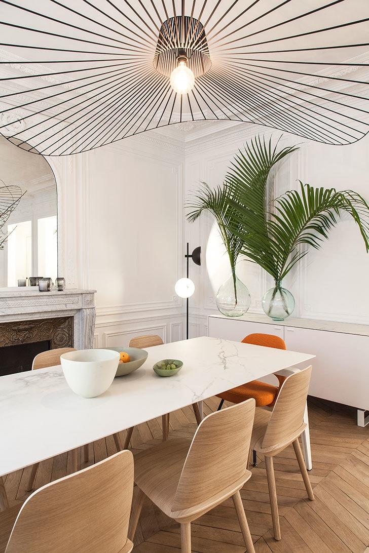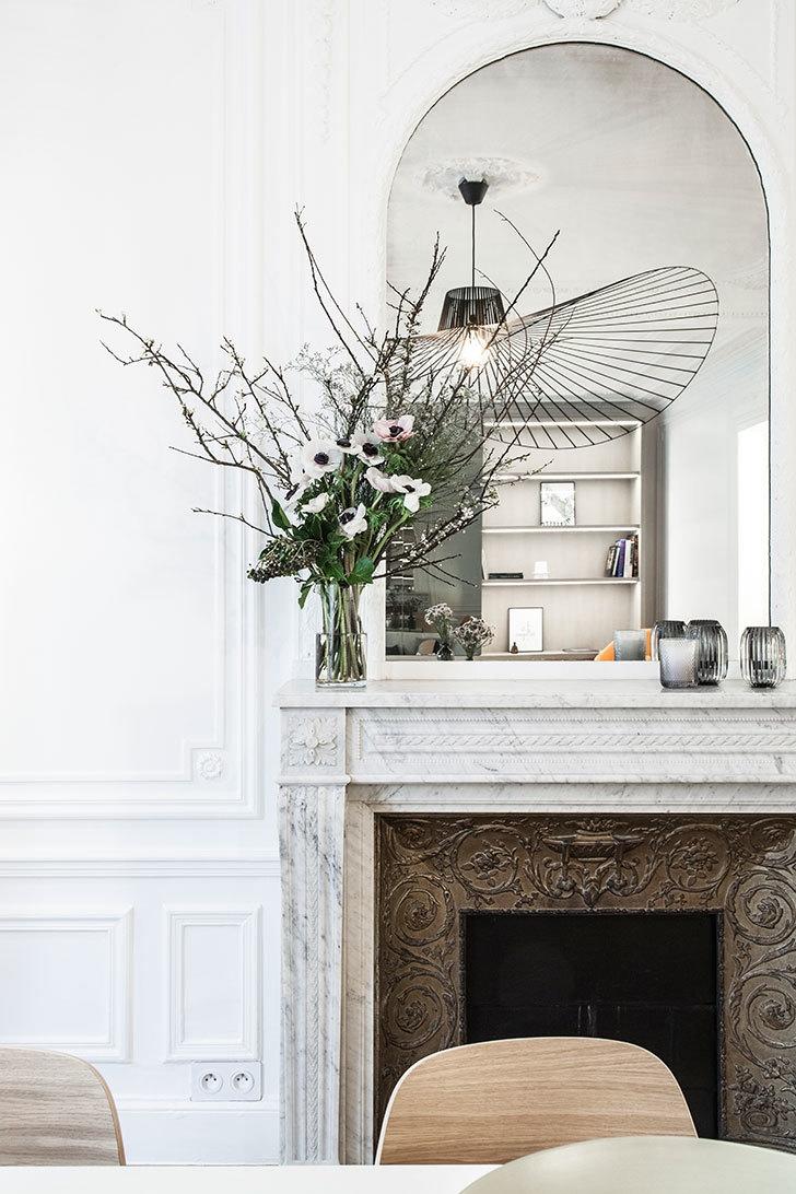 Перед нами гостиная в отреставрированной квартире в старинном доме в Париже. Дизайнер сохранил классический дух, привнеся сюда свежий ветер скандинавского стиля.