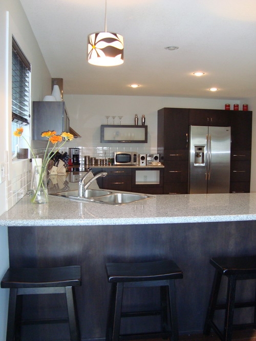 Поверхность рабочей зоны покрыта популярным и недорогим гранитом Bella White. Для проекта были заказаны полированные слэбы толщиной 3 сантиметра.