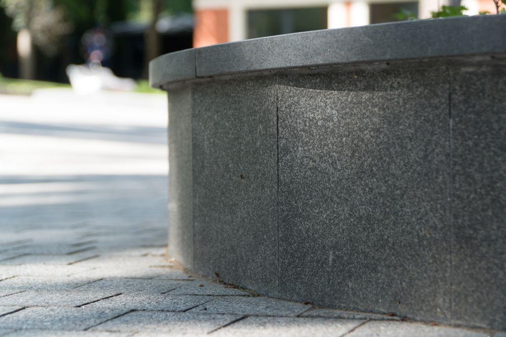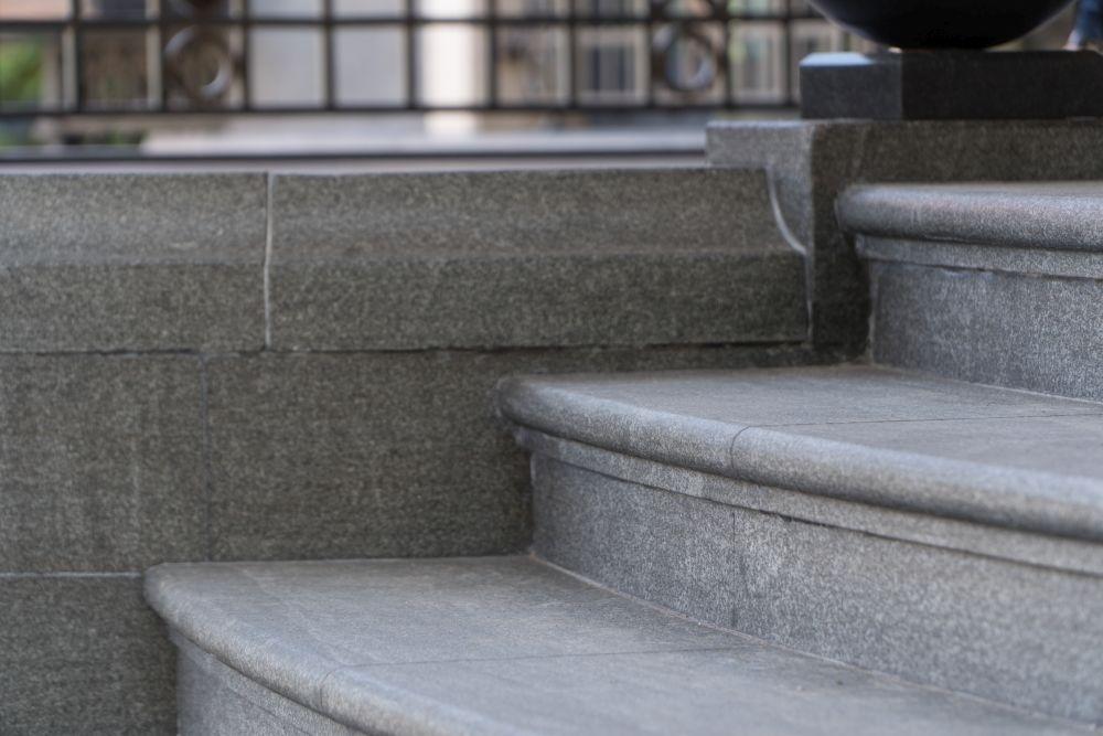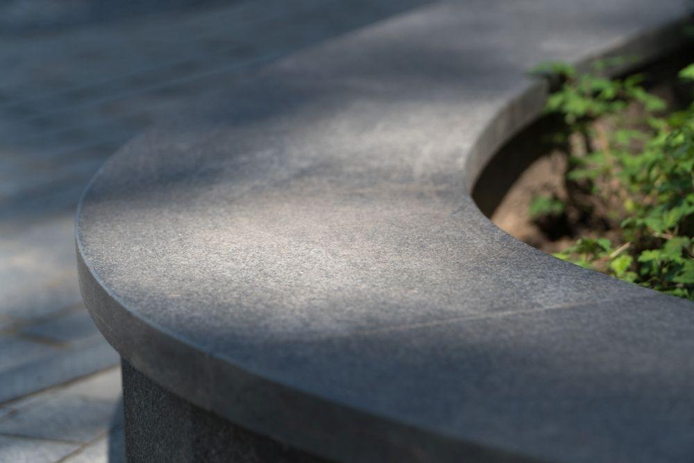 Входная зона выдержана в темно-серой и черной гамме. Здесь мы использовали 2 недорогих, но надежных сорта гранита: классический российский Габбро и китайский базальт Berry Black.