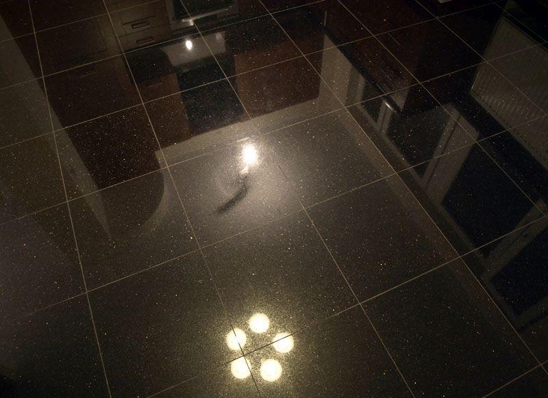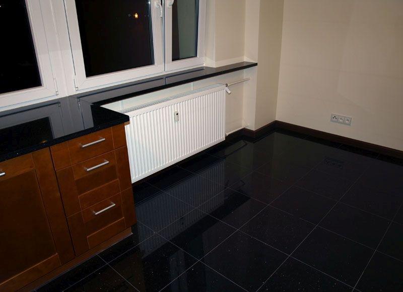 И пол, и столешница выполнены из полированного Black Galaxy. В полированной фактуре Black Galaxy поражает своей глянцевой поверхностью - его гладь становится почти зеркальной.