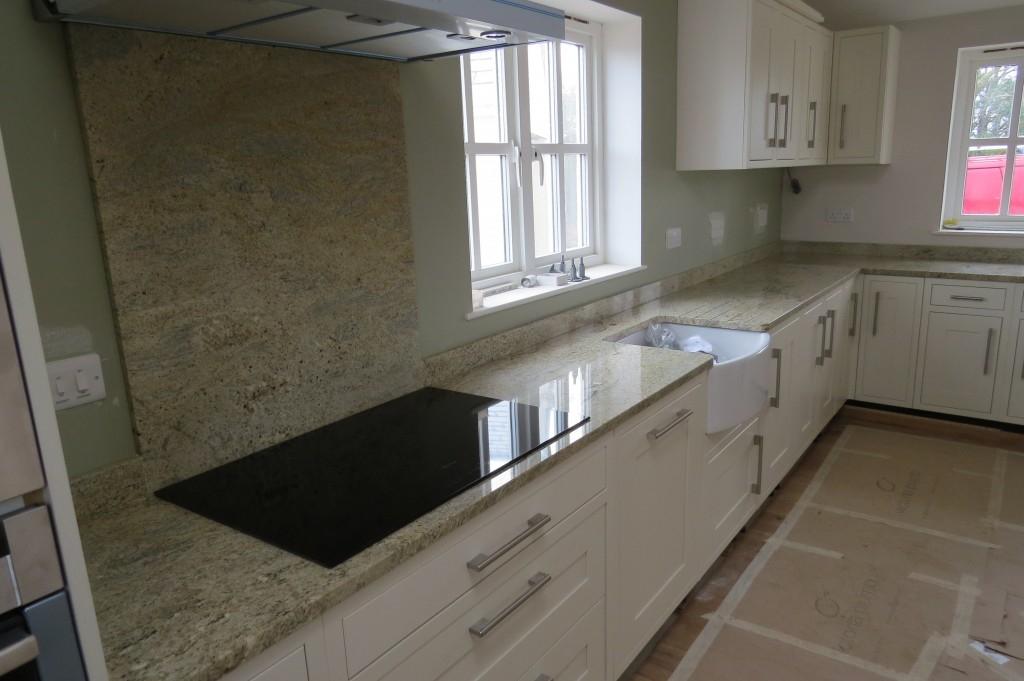 Мы видим кухню на завершающем этапе отделки. Осталось лишь встроить сантехнику, и тогда владельцы получат основательное и функциональное кухонное пространство.