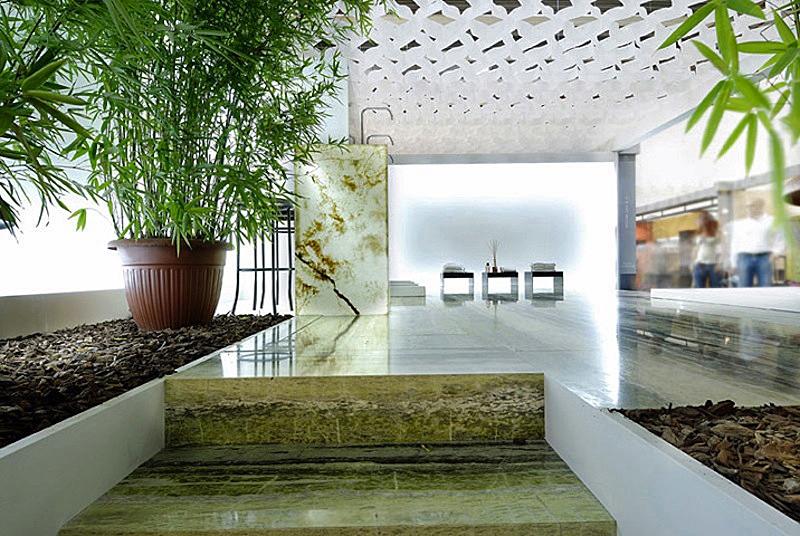 Если бы не главный материал - серпентинит Irish Green, проект произвел бы весьма посредственное впечатление. Но именно этот камень завершает, освежает и декорирует все пространство. Камень заряжает помещение и не требует дополнительных изысков. Irish Green - это весьма самодостаточный камень, который в одиночку способен держать на себе всю стилистическую идеологию проекта.