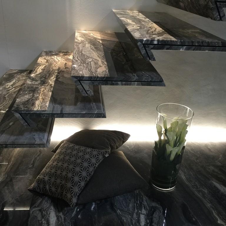 Подвесная лестница всегда смотрится удивительно и оригинально. Несмотря на развитие технологий и дизайна, ступени, будто зависшие в воздухе, создают сказочную атмосферу. Ко всему прочему, такая конструкция позволит заметно сэкономить пространство. А подвесные ступени из элегантного итальянского мрамора способны до неузнаваемости преобразить помещение.