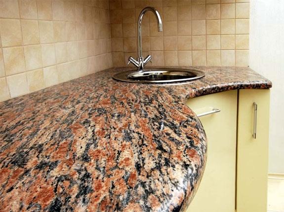 Но дизайнер не оставил без внимания и вопрос привлекательности проекта. Волнистая форма стола слегка перекликается с "текучим" рисунком текстуры камня. Такая картина поверхности привносит динамику, экспрессию в общую атмосферу кухонного пространства. Да и яркий кирпично-красный цвет минеральных зерен делает столешницу самым привлекательным элементом интерьера.