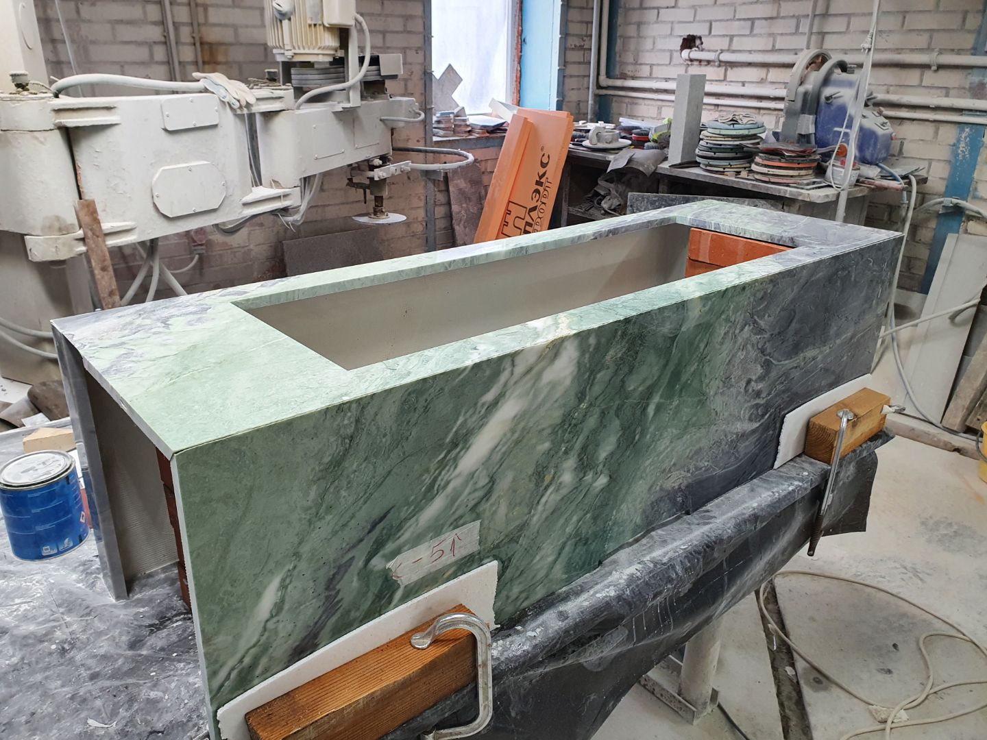 Облицовка парового камина зеленым мрамором Green Tornado.