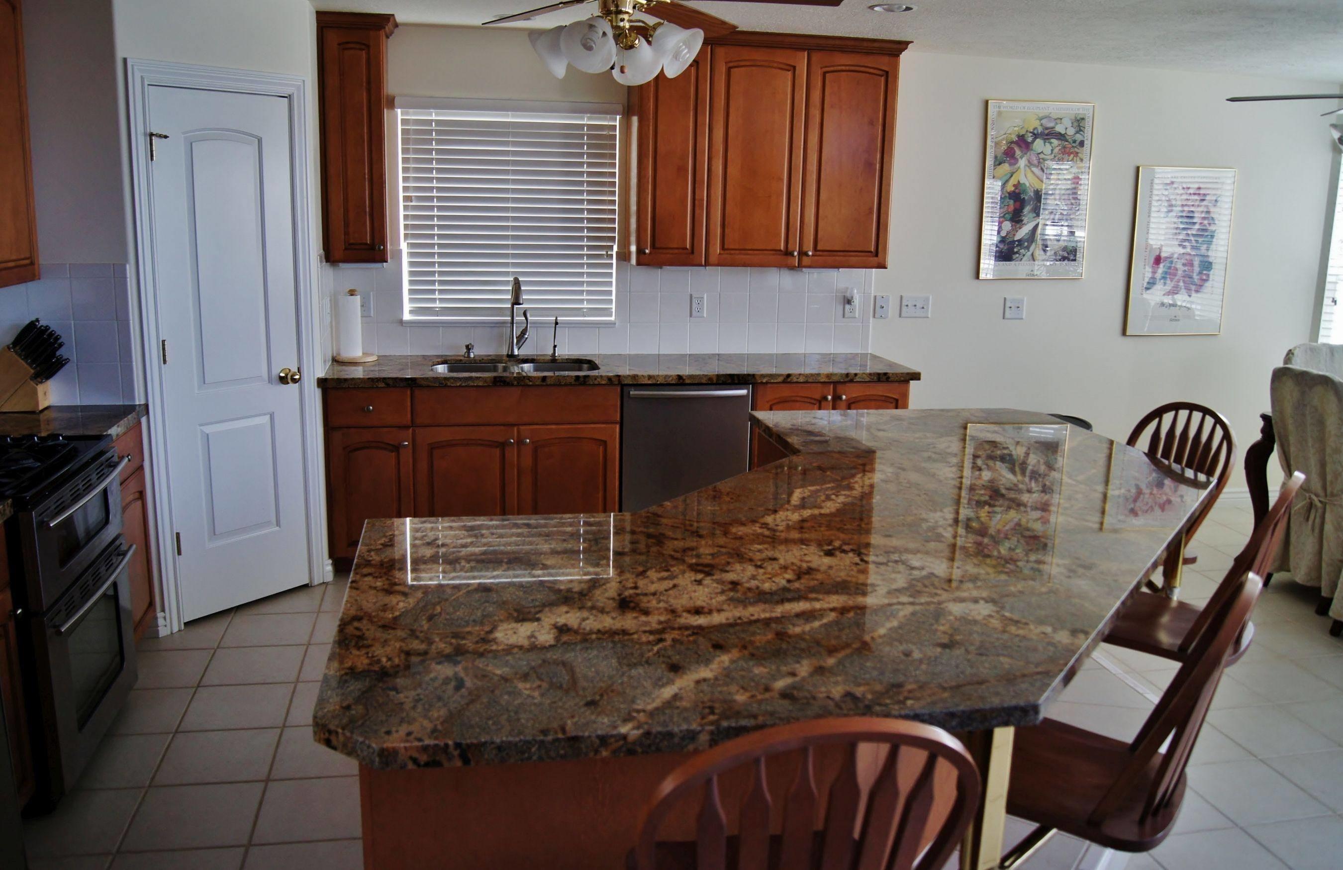 Все столешницы были вырезаны из 3-сантиметровых слэбов гранита Lapidus Gold с полированной фактурой поверхности. Мастер спроектировал столешницы таким образом, чтобы швы и стыки были максимально незаметными.