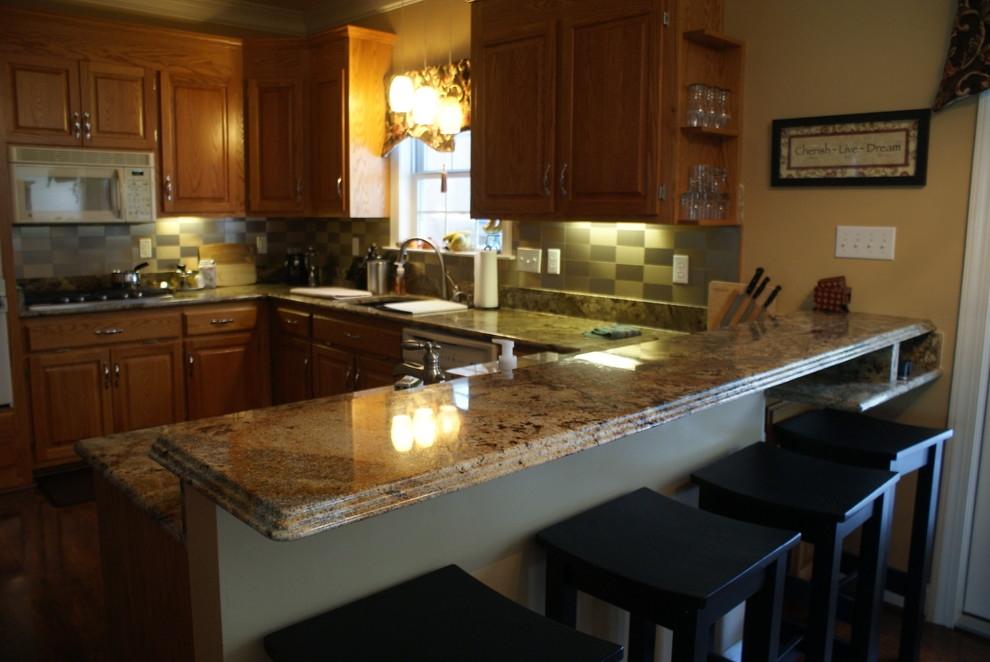 Кухонные рабочие поверхности и стойка покрыты столешницами из гранита Lapidus. Интересная текстура камня, выдержанная в классической цветовой гамме - множестве серых и бежевых оттенков, лаконично дополняет любой интерьер. Камень смотрится скромно, но самобытно. Хаотичный рисунок привносит в пространство динамизм и оригинальность.