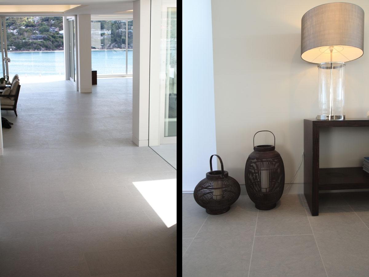 Пол загородного дома повсеместно облицован крупной плиткой испанского известняка Beige Verona. Серо-бежевый камень с легкими разводами только выигрывает в случае лощеной фактуры - бархатистая поверхность без блеска смотрится современно и стильно. Этот камень гармонично сочетается как с другими материалами, так и с предметами интерьера любой стилистики.