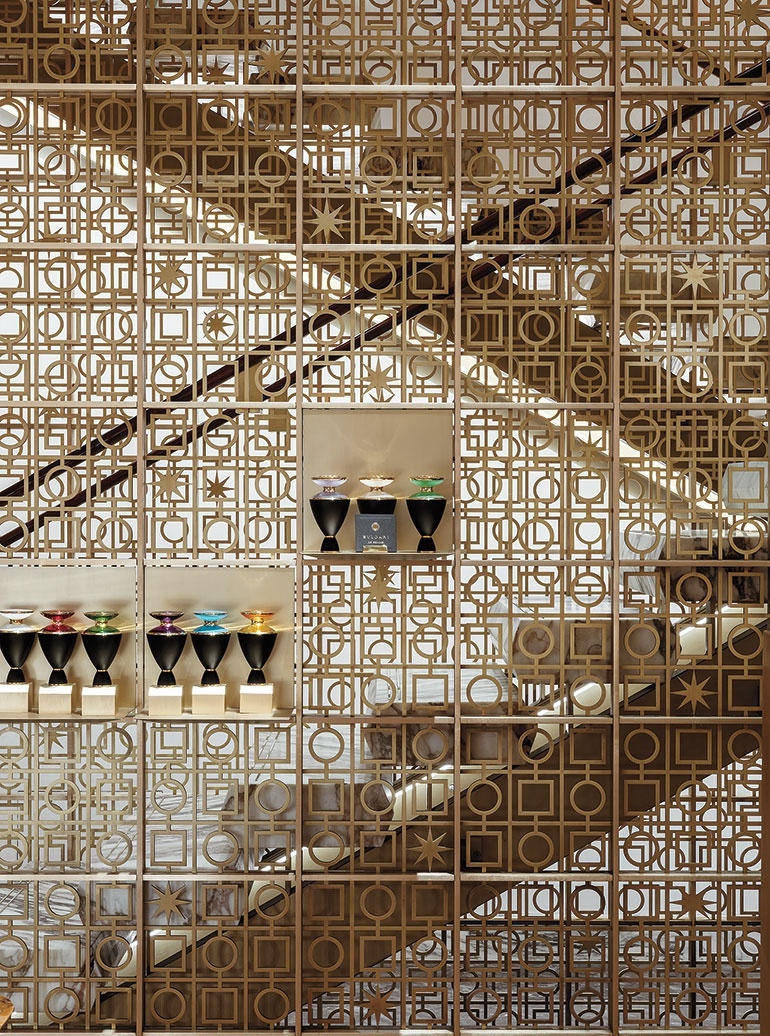 С 1989 года пространство бутика занимает 400 квадратных метра и 2 этажа Crown Building, расположенного на Манхэттене. И это одна из самых дорогостоящих торговых площадок во всей стране. И совсем недавно настала пора провести основательную реконструкцию пространства. Питер Марино не первый раз создает проекты для Bvlgari. Марка его ценит за смелые решения в совокупности с тягой к роскоши и тонким чутьем на стилистику бренда.