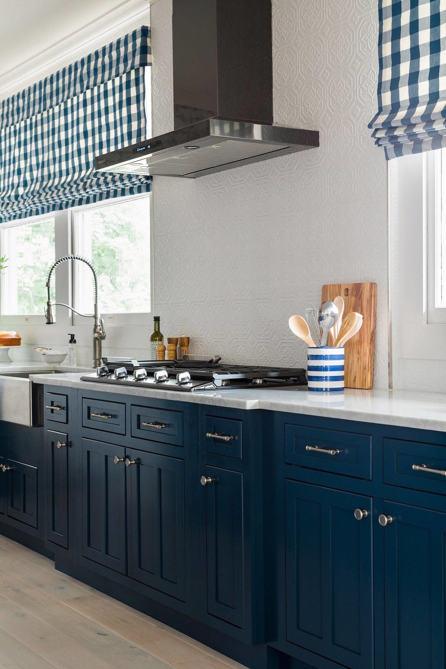Перед нами очаровательный интерьер кухни в скандинавском стиле. Бело-синее пространство смотрится лаконично и привлекательно, оно удачно и с точки зрения эргономики.