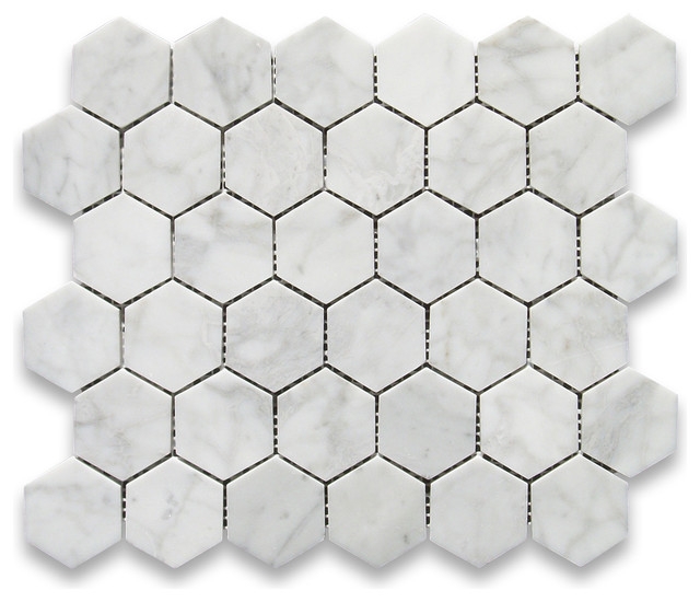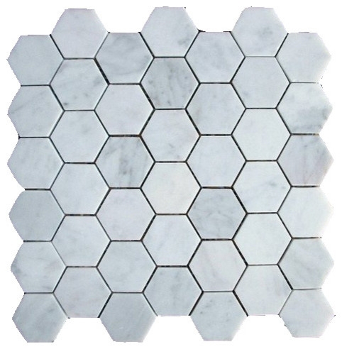 Легендарный мрамор Bianco Carrara завершает интерьерную композицию, придает элегантности. Этот благородный камень использован для облицовки пола в ванной комнате и для отделки фартука, обрамляющего кухонную рабочую зону. Камень представлен однотонной мозаикой в форме сот.
