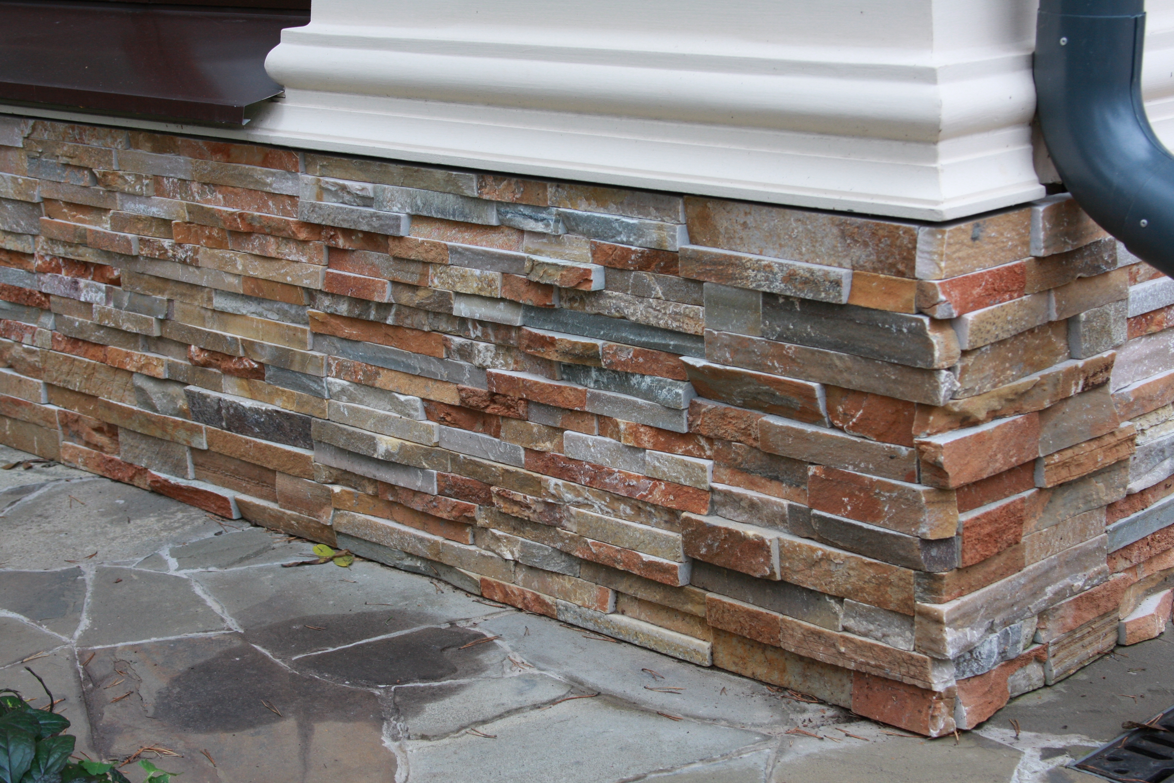 Отличная и проверенная временем идея для отделки фасада частного дома. Вне зависимости от основного отделочного материала Вашего дома (дерево, кирпич, керамика, пластик или камень), цветной сланец на цоколе - органичен и долговечен. Его применяют для отделки локальных зон: цокольной части, входной группы, крыльца или ограды.