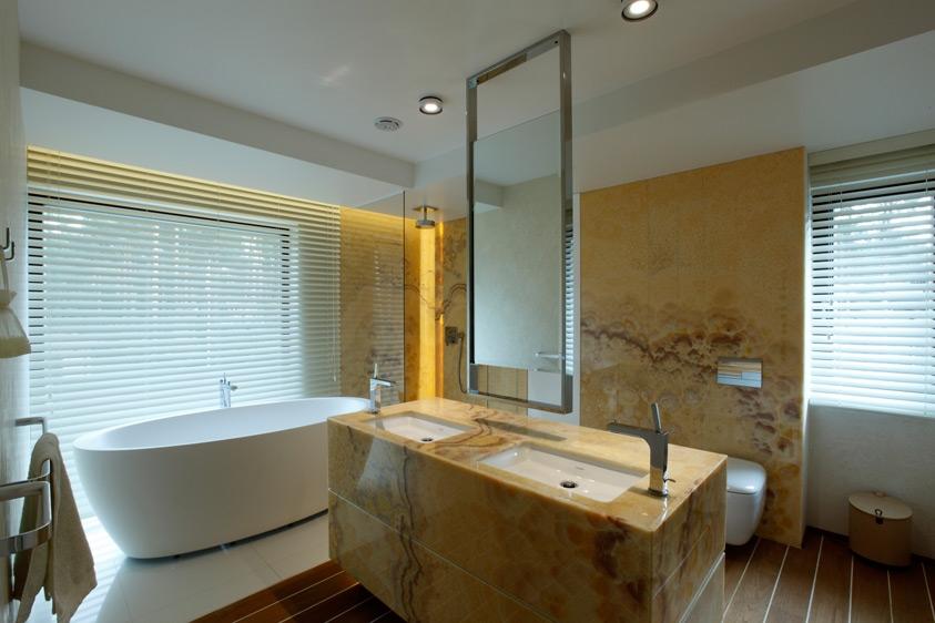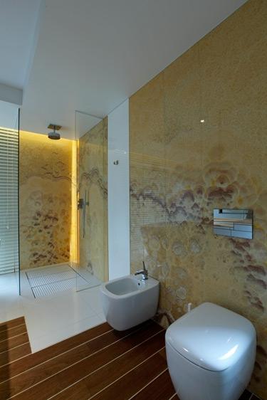 Использование мраморного оникса в отделке ванной комнаты - прекрасный способ создать запоминающийся и цельный интерьер. Этот самобытный камень раскрывает огромный диапазон оригинальных и эргономичных решений. Например, подсвеченный изнутри оникс решает несколько задач - это и потрясающий декор, и долговечная отделка, и источник освещения.