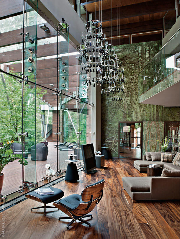 Частный дом в Подмосковье оформлен по проекту Ольги Фрейман. Сочетание зеленого и коричневого на инстинктивном уровне является константой и мощным символом для человека во все времена. Самый "природный", органческий союз тонов.