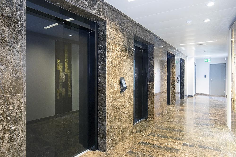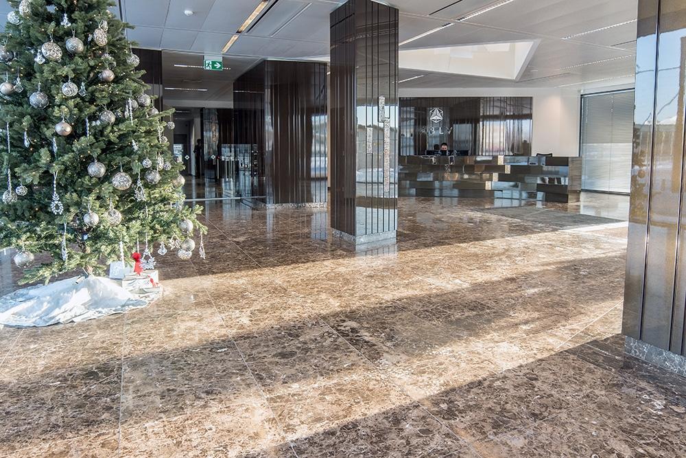 • Отделка интерьера бизнес-центра мрамором Emperador Dark
