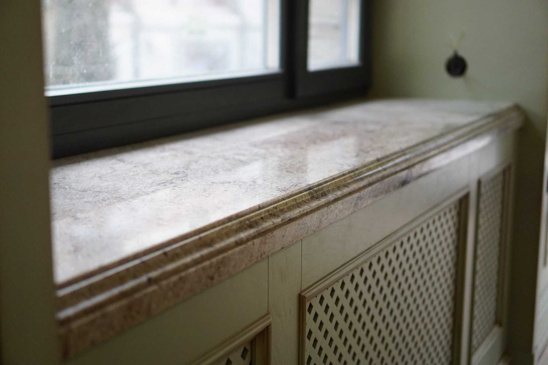 Изготовление и монтаж подоконников из Индийского бежевого гранита Crema Valentino для частного заказчика из Санкт-Петербурга.