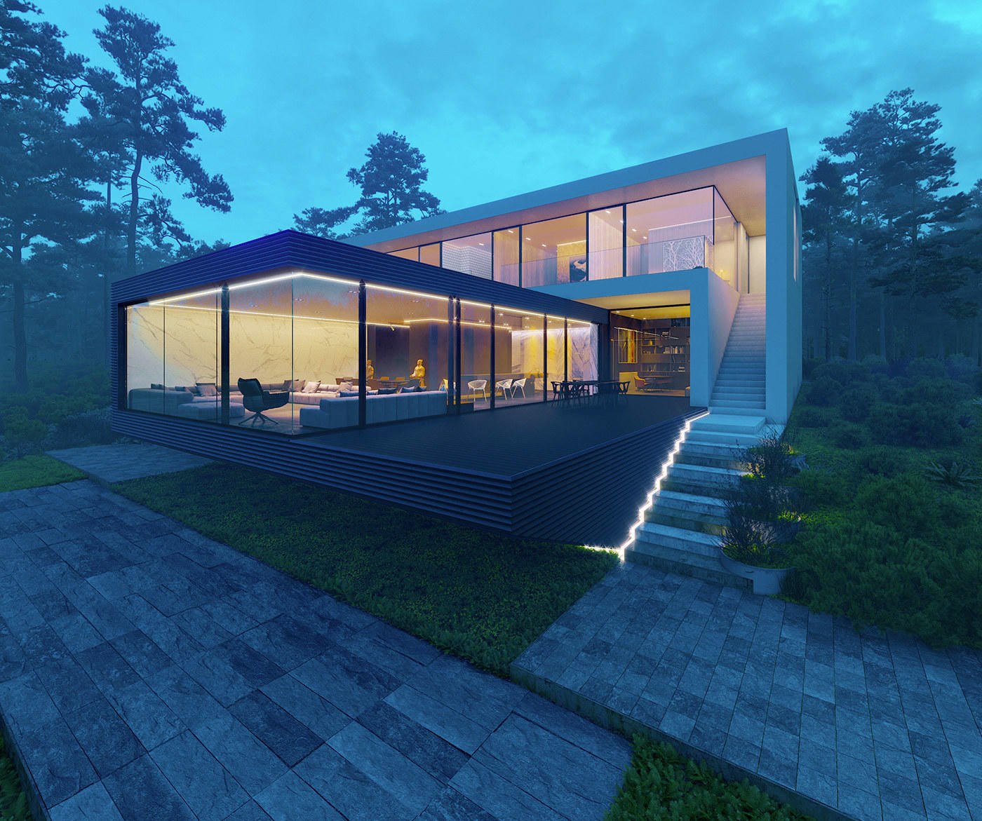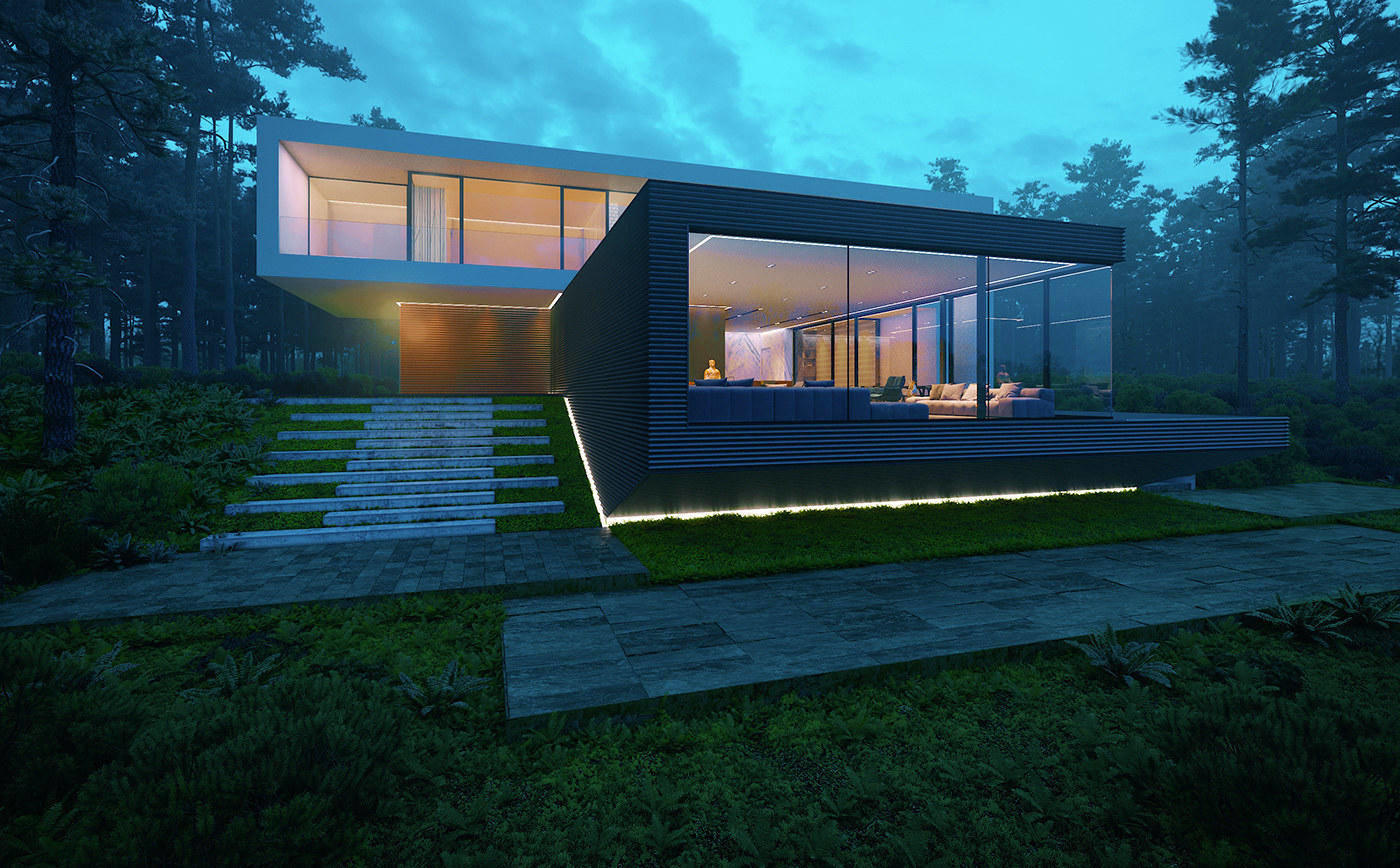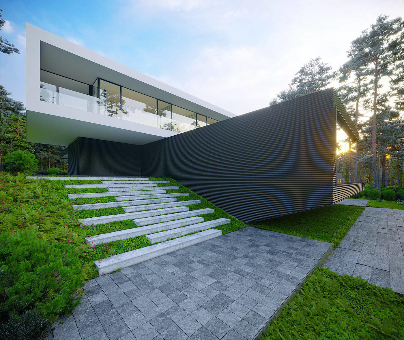 Автор проекта — Александр Жидков перенес ключевые тенденции дизайна на российскую почву. Это касается и архитектуры этой загородной резиденции, и ландшафтного благоустройства вокруг нее.