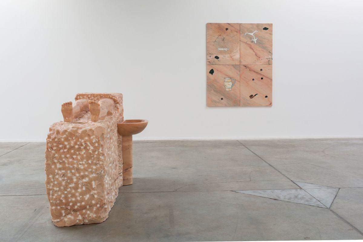 Основа выставки - 4 огромных мраморных блока одноименного мрамора Rosa Aurora, вес некоторых превышает 7 тонн. И из необработанной породы с грубым сколом вдруг прорисовываются предметы сантехники: раковины, унитазы, краны, а также элементы человеческого тела. Сантехнические приборы поблескивают полированными гранями, будто бы имея влажную поверхность. С других сторон мы видим грубый скол, шлифованную грань и бархатистое лощение. В этой выставке наглядно предстает камень в различных фактурах поверхности.