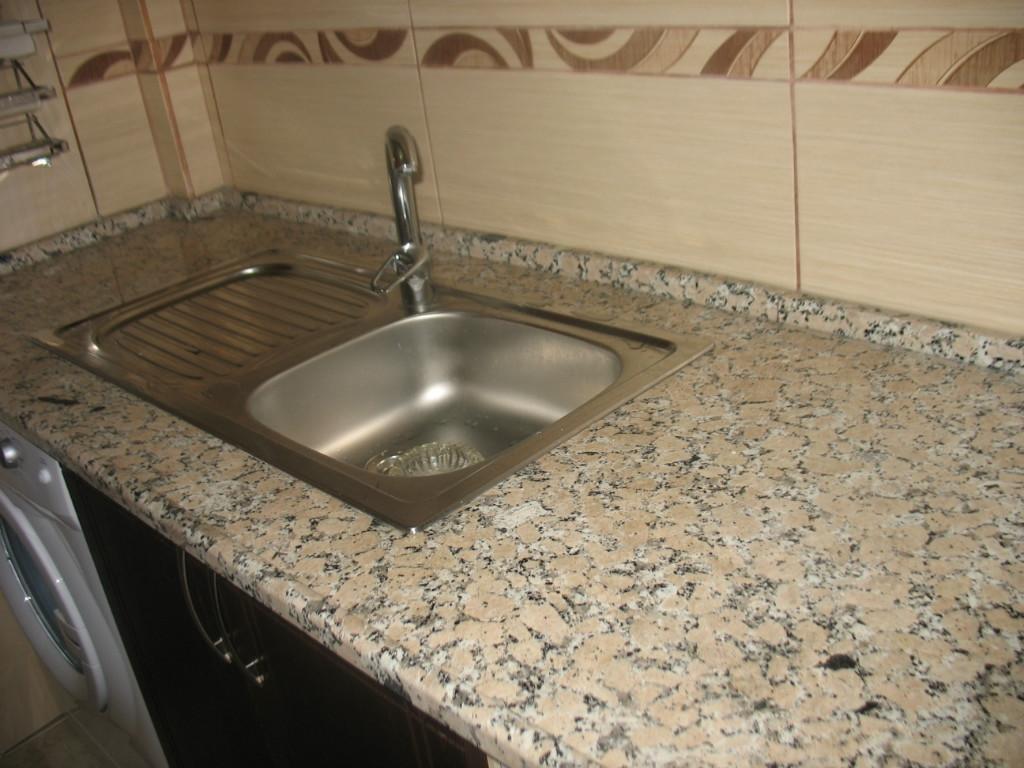 Кухонная столешница выполнена из полированного гранита Rosavel.