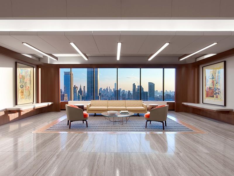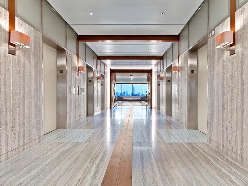 • Отделка офиса крупными плитами серого травертина