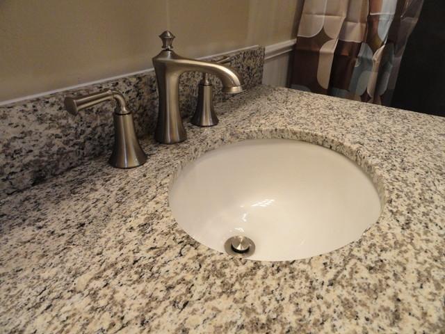 Столешница для раковины изготовлена из китайского гранита Tiger Skin White. Этот камень органичен в любом проекте, при этом его отличает характерная "тигровая" текстура.
