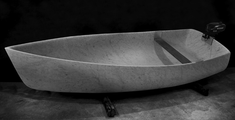 Скульптура Ahgalla - изысканная, утонченная лодка из чистейшего каррарского мрамора, способна перевозить от 3 до 8 человек. Ее длина достигает 5 метров, а вес - 400 килограмм. Фабио максимально облегчил ее конструкцию, сделав очень тонкие стенки - от 1 до 3 см.