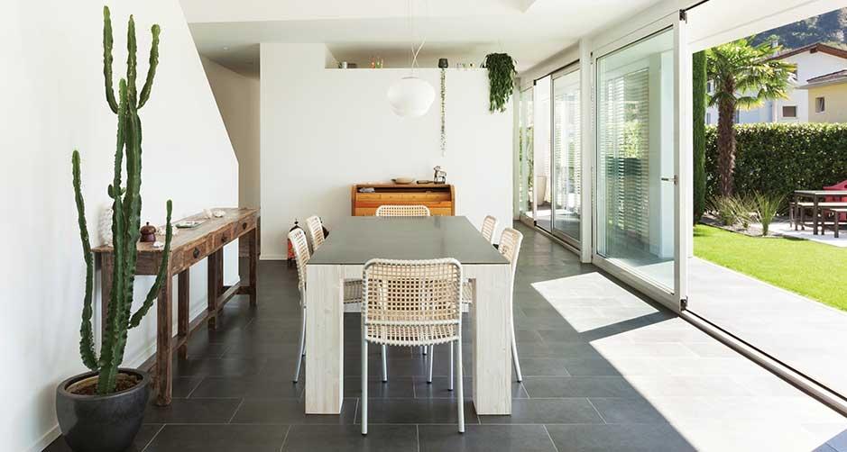 Черный сланец на полу - уже устойчивая, проверенная временем, тенденция интерьерной моды. Этот скромный и лаконичный камень цвета асфальта - неотъемлемая часть современного дизайна. Его матовая, бархатистая фактура ненавязчиво привлекает внимание. Его простой и стильный облик приходится по душе ценителям минимализма, эко-дизайна и интерьеров в темных тонах. Он органичен с другими отделочными материалами, да и весьма устойчив к механическим нагрузкам.