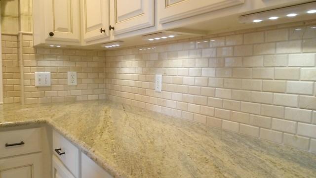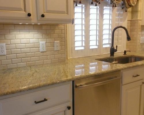 Кухонный фартук также смотрится очень привлекательно: он сложен "кирпичной" кладкой полированных плиток мрамора Crema Marfil. Мягкий кремовый оттенок камня привносит элегантный и уютный свет в общее пространство.