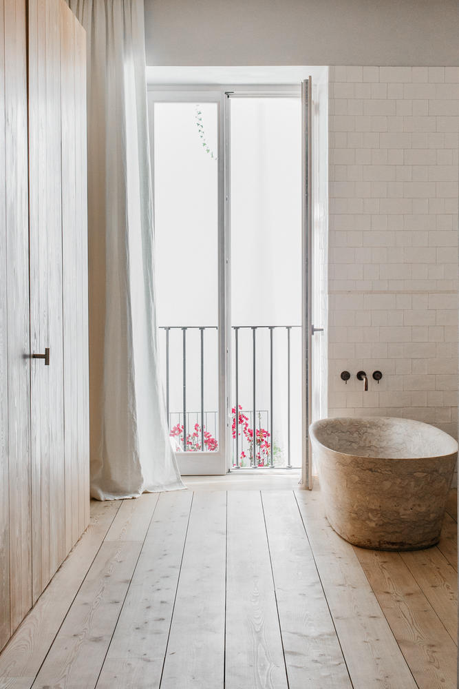 В этой статье мы покажем вам результаты реставрации удивительной виллы, расположенной в Лиссабоне, Португалия. Речь о вилле Santa Clara 1728 Aires Mateus, которая стала одним из самых ярких архитектурных проектов 2016 года. Обратим внимание на ванную комнату. Прежде всего, отметим поразительный по чистоте минимализм, без декора и попыток заполнить белоснежное пространство.