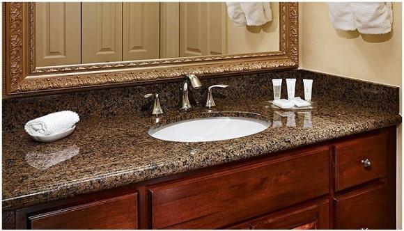 Элегантная столешница для раковины выполнена из благородного гранита Tropic Brown. Прочный камень с низким показателем влагопоглощения, веками сохранит свой первозданный вид.