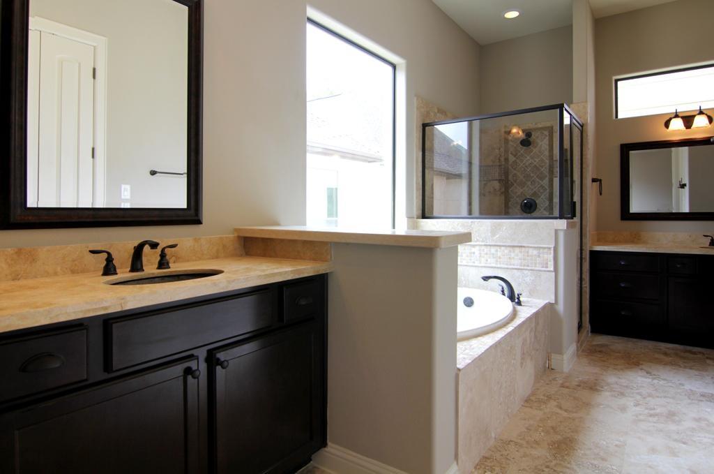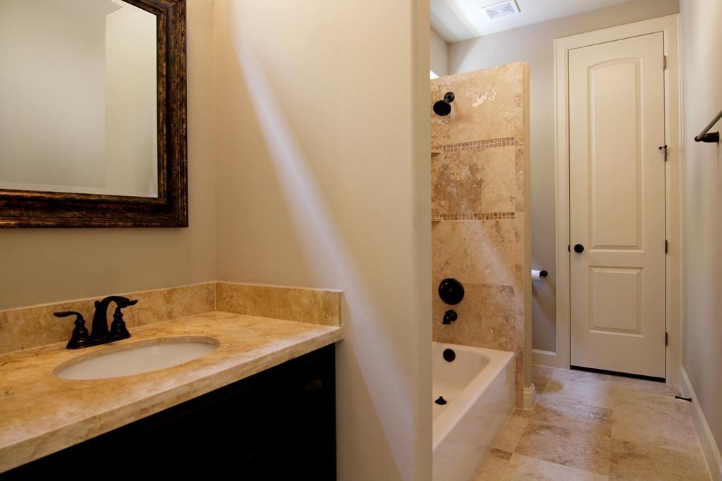 Заказчик выбрал бежевый Travertine Classic для комплексной облицовки ванной комнаты. Здесь использовался травертин с неравномерным, узорчатым рисунком, что говорит о направлении распиловки слэба Cross Cut (поперек прожилковатости). Лощеная фактура поверхности придает камню более мягкий, бархатистый вид. Лишенный блеска, пористый и матовый травертин способствует спокойной, интимной обстановке в помещении.