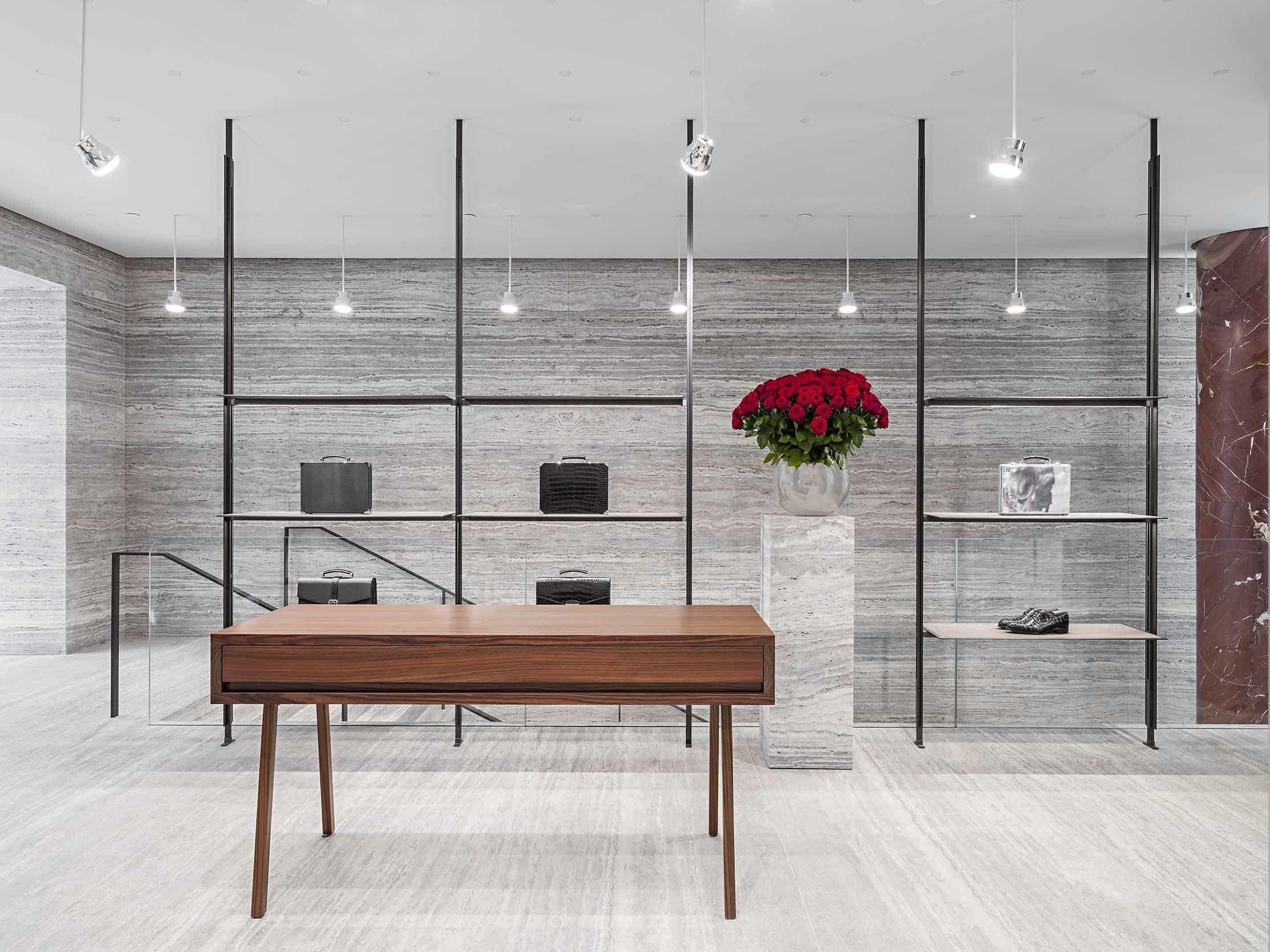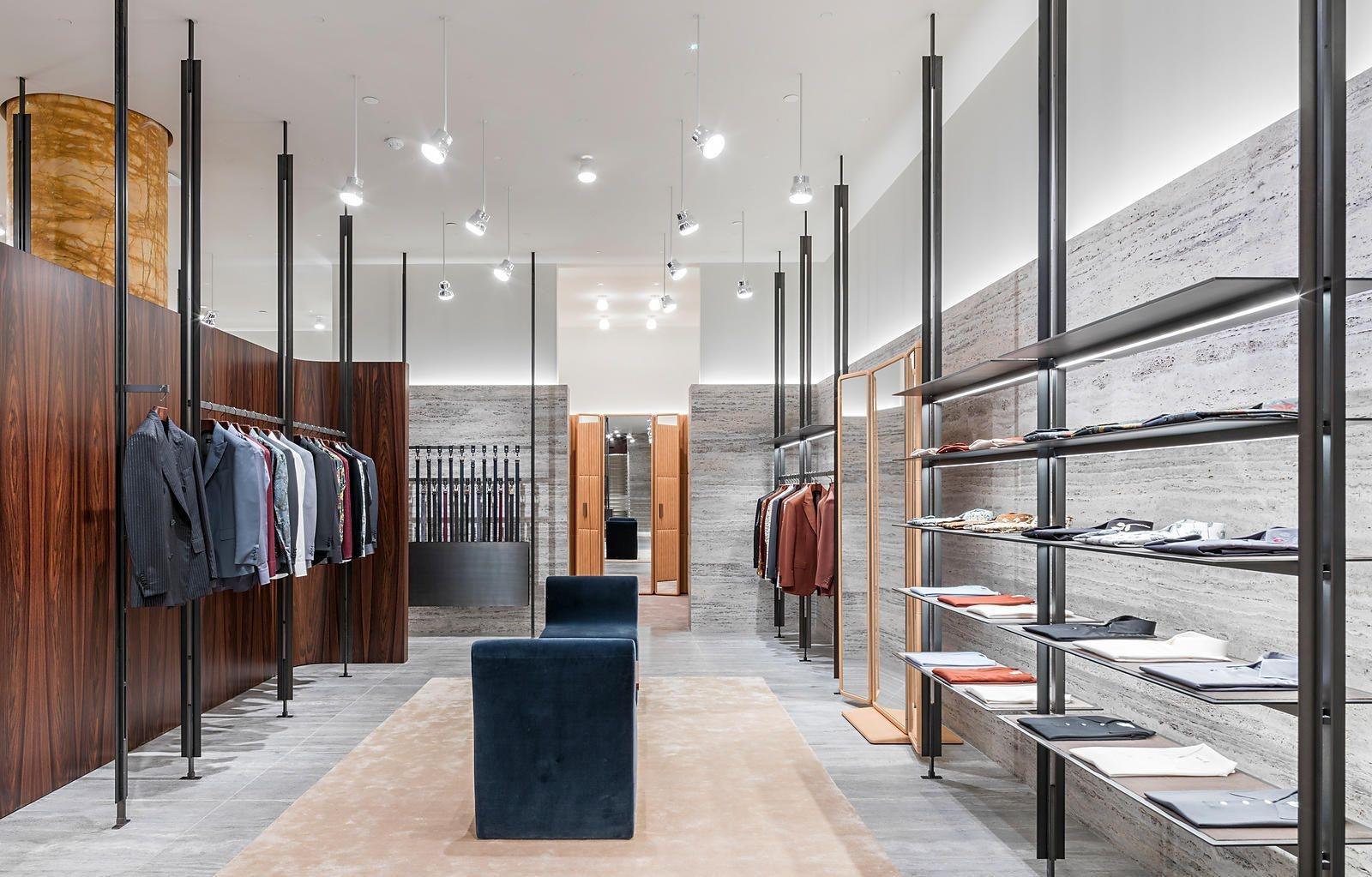 Интерьер флагманского бутика мужской одежды Brioni, расположенный в Нью-Йорке.
