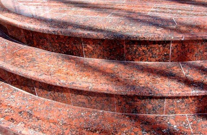 Радиусная лестница, украшающая крыльцо загородного дома, выполнена из полированного Капустинского гранита.