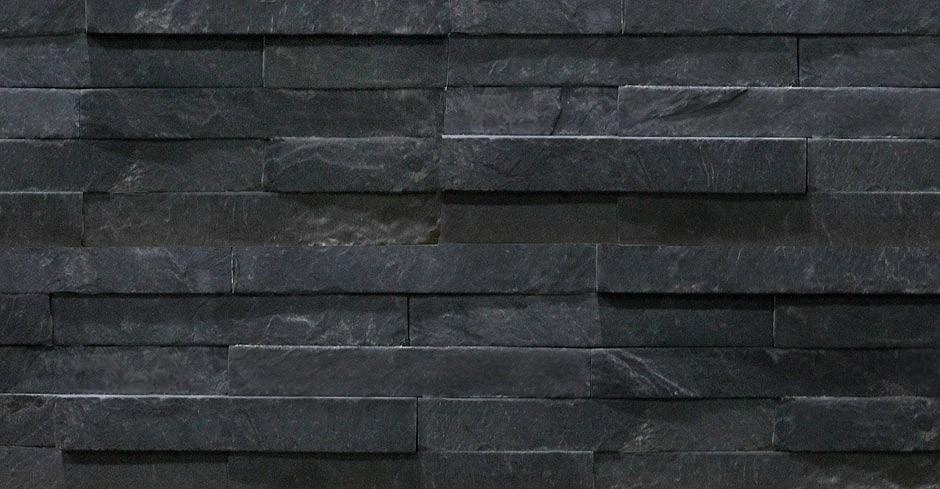 Мы видим элемент отделки стены черным сланцем Black Slate. Колотые плиты камня образуют кладку «каменная гряда». Такой вид отделки также называется «диким» камнем.